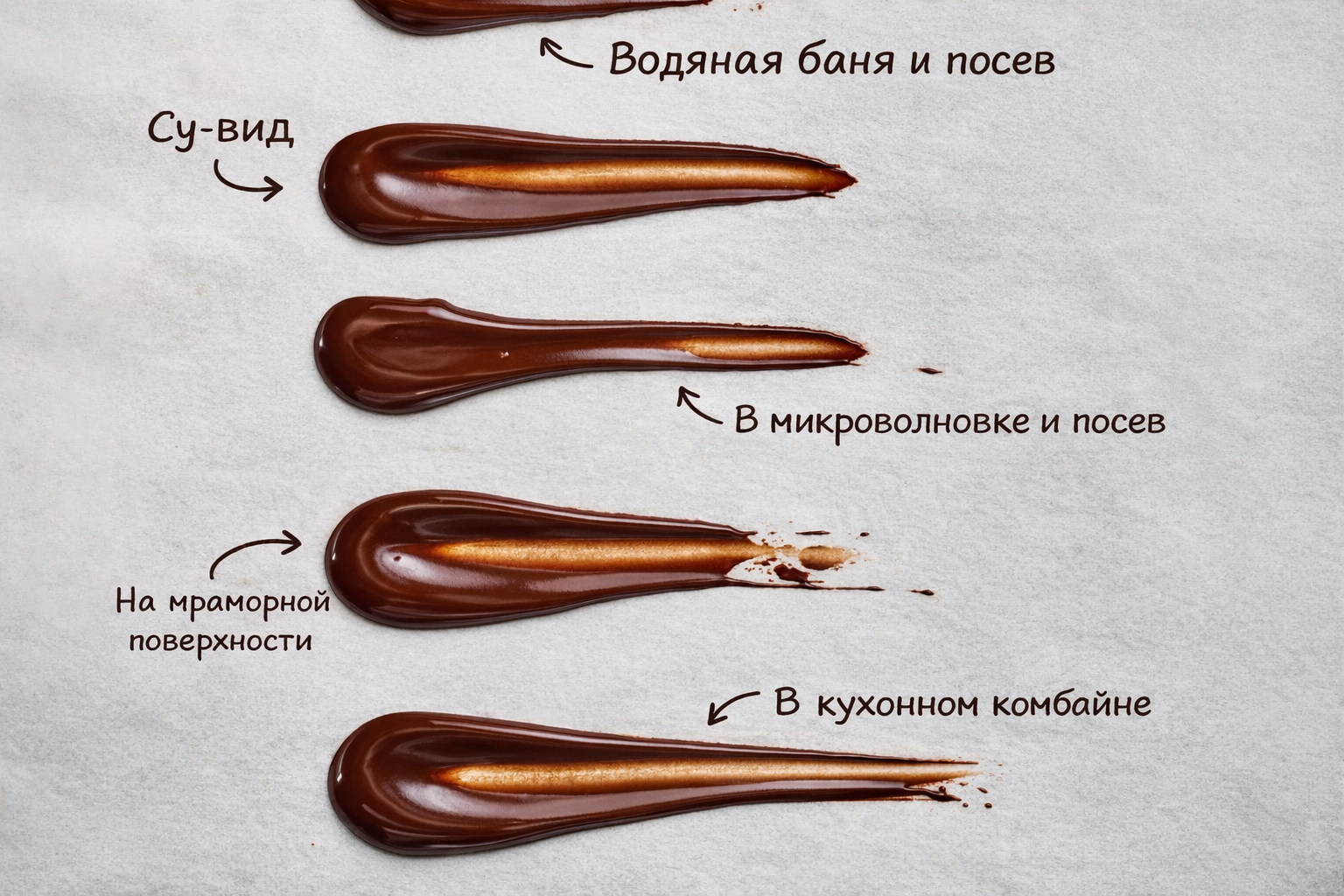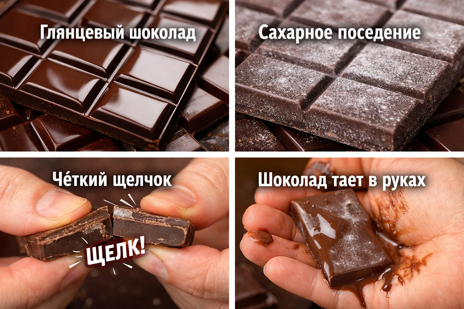👉 Тёмный шоколад самый стабильный и лучше всего подходит для новичков.