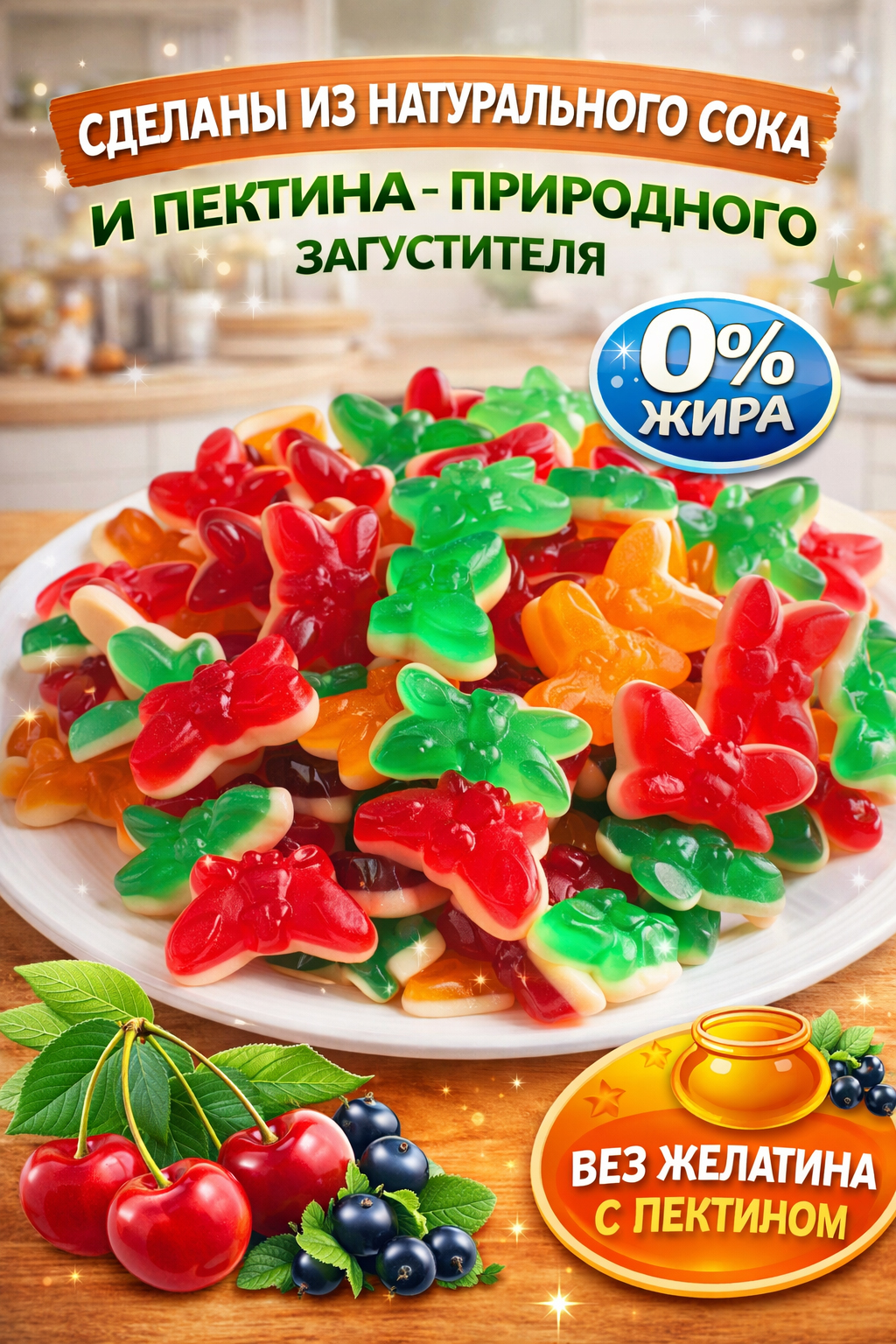 Мармелад «KrutFrut» — жевательные бабочки (0,5 кг) Погрузитесь в мир яркого вкуса и сладкого настроения! Жевательный мармелад в форме милых бабочек от KrutFrut — это не просто сладость, а настоящее удовольствие для детей и взрослых.