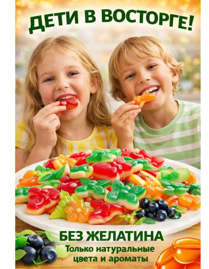 Яркий вкус и нежная текстура Мягкие, тягучие мармеладки с насыщенным фруктовым вкусом буквально тают во рту, даря радость с каждой конфеткой.