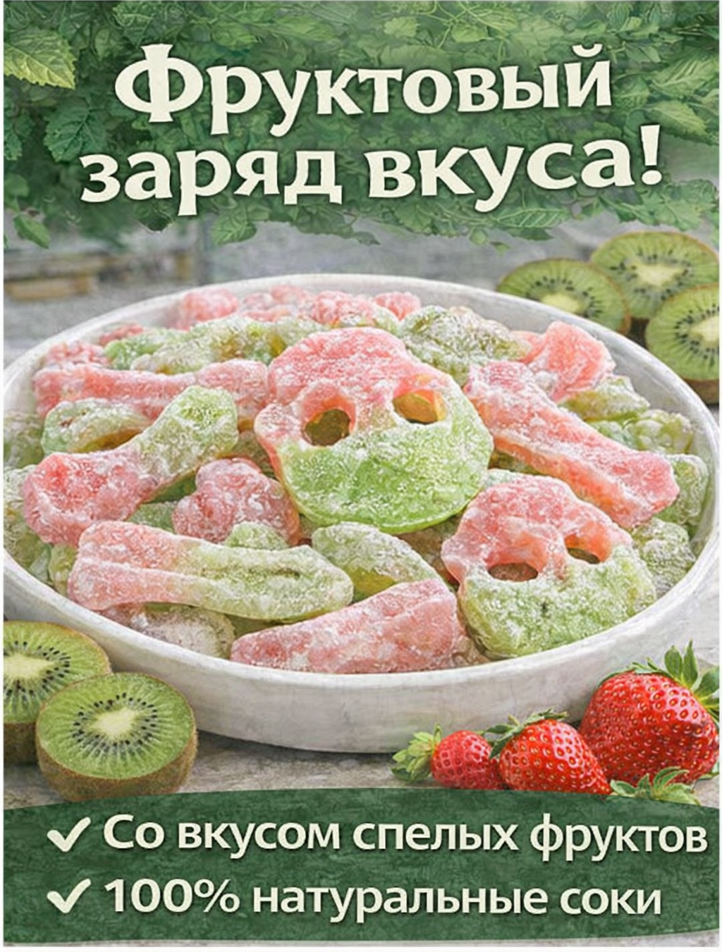 Жевательный мармелад KrutFrut в оригинальной форме черепов и костей — это яркое и необычное лакомство, которое привлекает внимание своим дизайном и насыщенным фруктовым вкусом. Такой формат делает продукт особенно интересным для тематических вечеринок, праздников или просто для разнообразия привычных сладостей. Мармелад обладает мягкой, упругой текстурой благодаря содержанию желатина и пектинов, а также сбалансированным вкусом с лёгкой кислинкой за счёт лимонной кислоты. В состав входят сахар, глюкозно-фруктозный сироп и концентрированный яблочный сок. Для сохранения свежести и приятной консистенции используется глицерин, а привлекательный внешний вид достигается с помощью натуральных красителей и глазирователя на основе карнаубского воска. Продукт имеет энергетическую ценность 310 ккал на 100 г, содержит 6,5 г белков, минимальное количество жиров и 70 г углеводов, что делает его источником быстрой энергии. Мармелад выпускается под торговой маркой KrutFrut и производится в России компанией ООО «КДВ Воронеж» в соответствии со стандартом СТО 90303483-028-2021. Фасованная упаковка удобна для хранения и использования. Рекомендуется хранить продукт при температуре (18±3) °C и относительной влажности воздуха не более 70%, избегая воздействия прямых солнечных лучей.