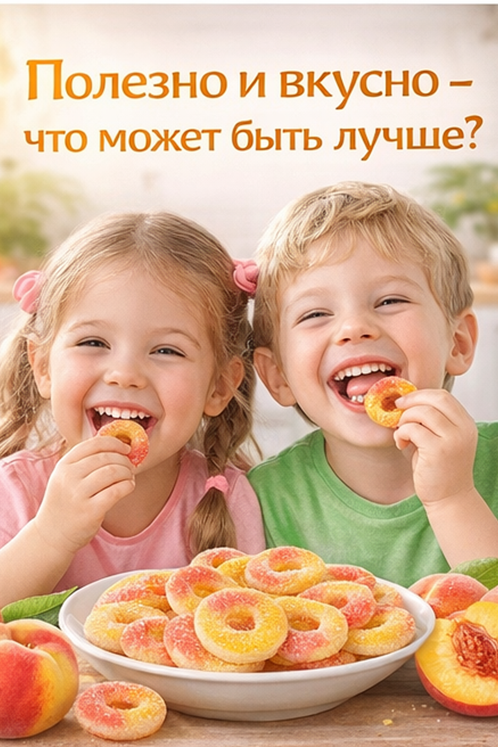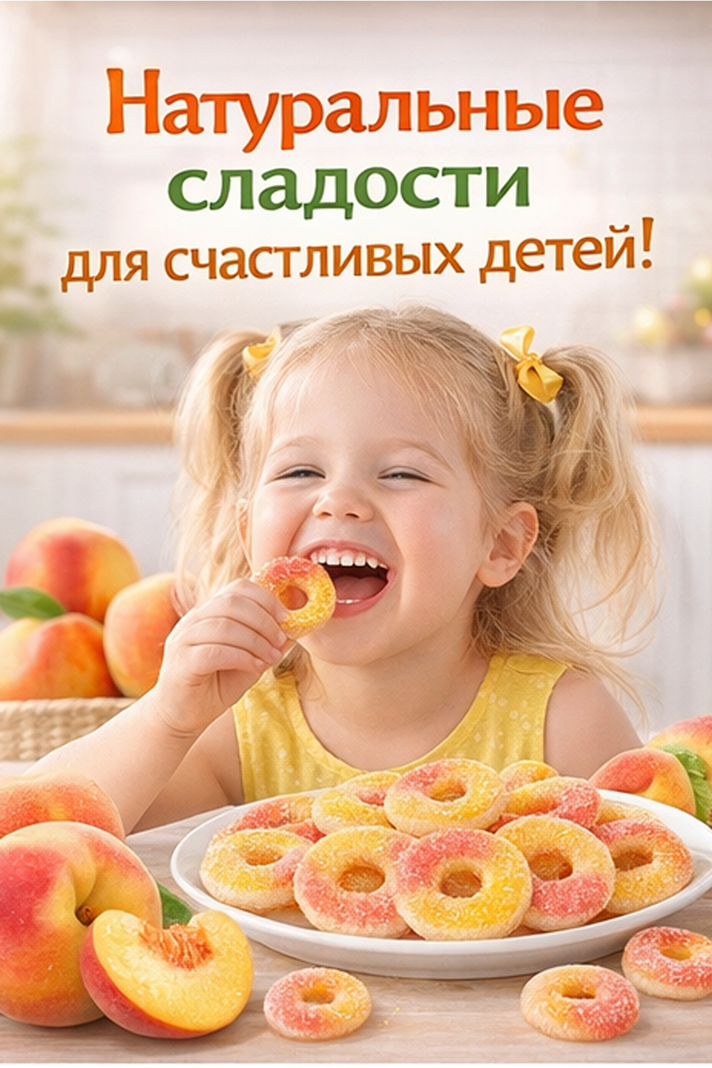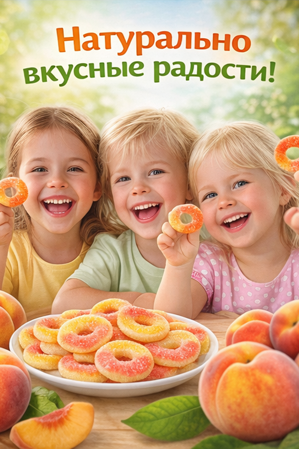 Жевательный мармелад KrutFrut «Колечки со вкусом персика» — это ароматное фруктовое лакомство с мягкой упругой текстурой и насыщенным вкусом. Он станет отличным выбором для быстрого перекуса, а также дополнением к чаю или кофе. В основе продукта — глюкозно-фруктозный сироп, сахар, желатин и концентрированный яблочный сок. Для формирования приятной структуры используются пектины, а сбалансированный вкус достигается благодаря добавлению лимонной кислоты. Натуральные компоненты, такие как сок чёрной моркови и куркумин, придают мармеладу аппетитный цвет и делают его внешний вид привлекательным.