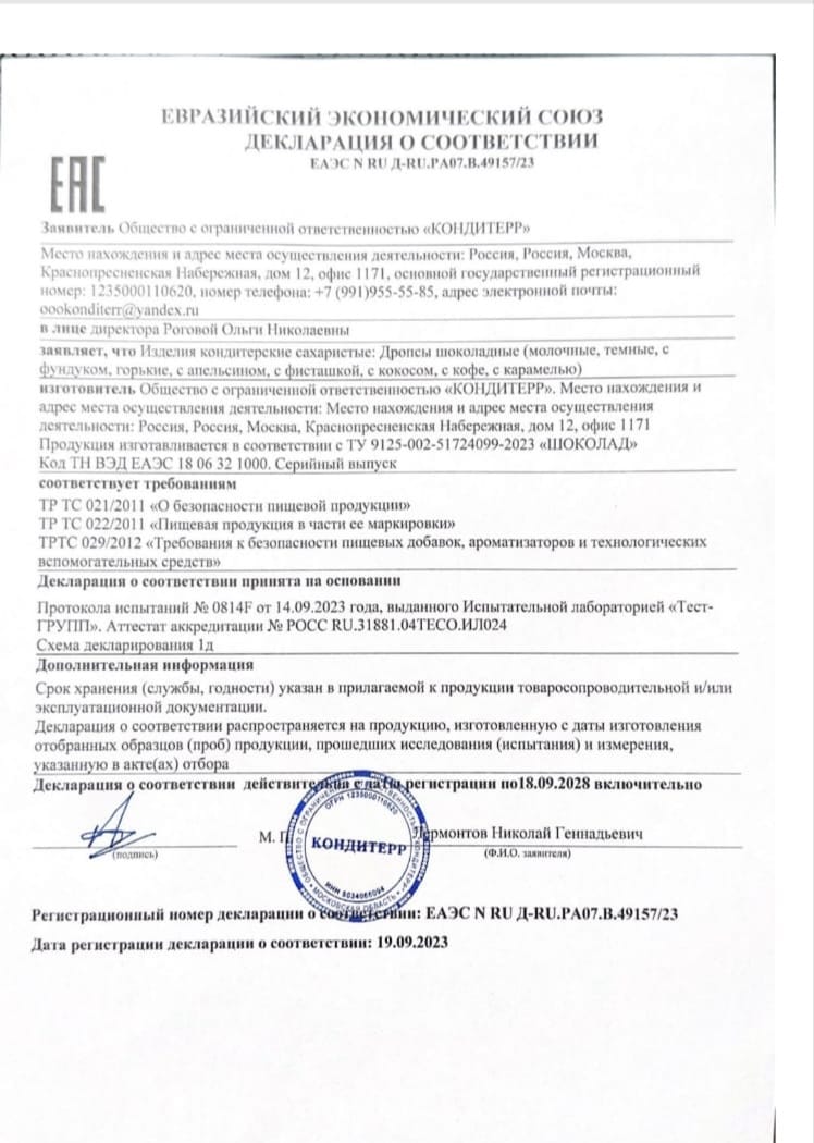 Шоколад изготовлен в России, где производство продуктов питания строго регулируется и контролируется. Это гарантирует высокое качество продукции и ее безопасность для потребителей.