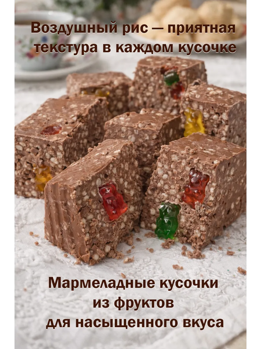 - Легкие хрустящие шарики воздушного риса внутри создают приятную игру текстур.