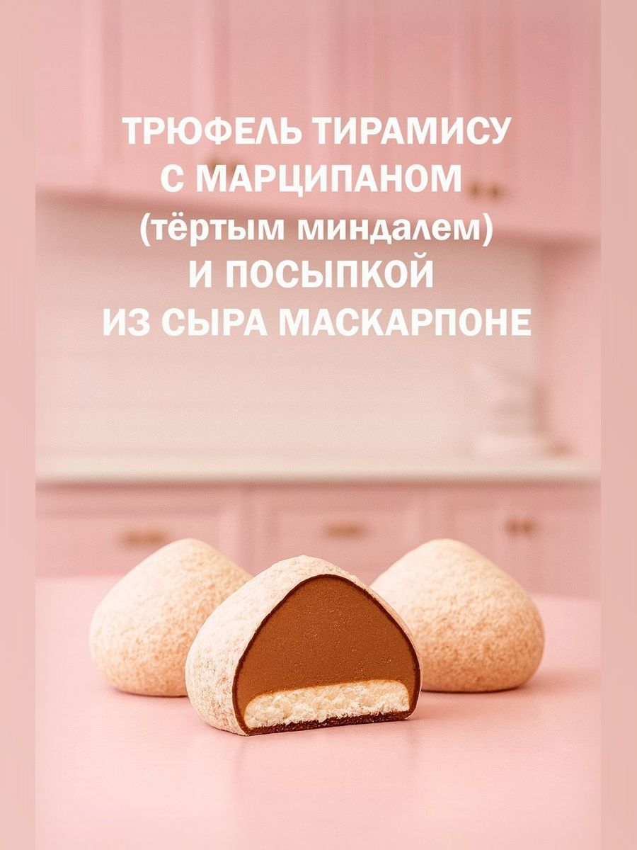 Для тех, кто любит разнообразие вкусов, предлагаем изысканные сладости, вдохновленные знаменитым итальянским десертом Тирамису. Они обладают удивительно мягким и воздушным центром, покрытым слоем шоколадной глазури и посыпанным натуральной итальянской сырной пудрой. Этот микс шоколада, марципана и итальянского маскарпоне создаёт невероятное гастрономическое удовольствие, заставляя забыть обо всём вокруг.
